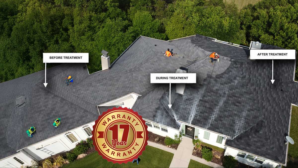 Roof Savers Springfield guarantees that treated asphalt shingles will maintain their original performance, as designed and warranted by the manufacturer, for at least seventeen (17) years from the treatment date.